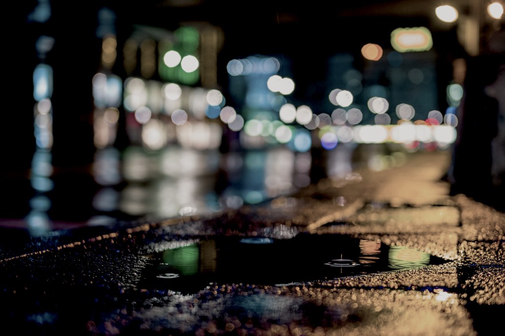 among dripping lampposts and the cars, turned off, parked in a row, one behind the other,