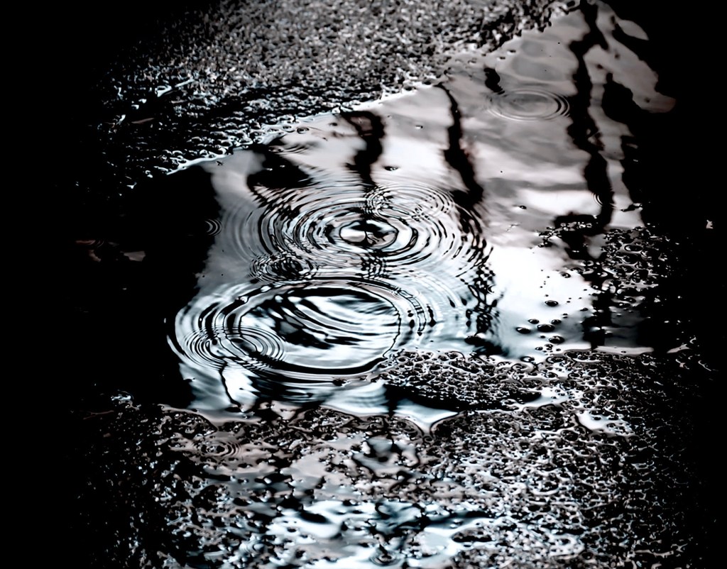 and in a little puddle look at us, reflected.