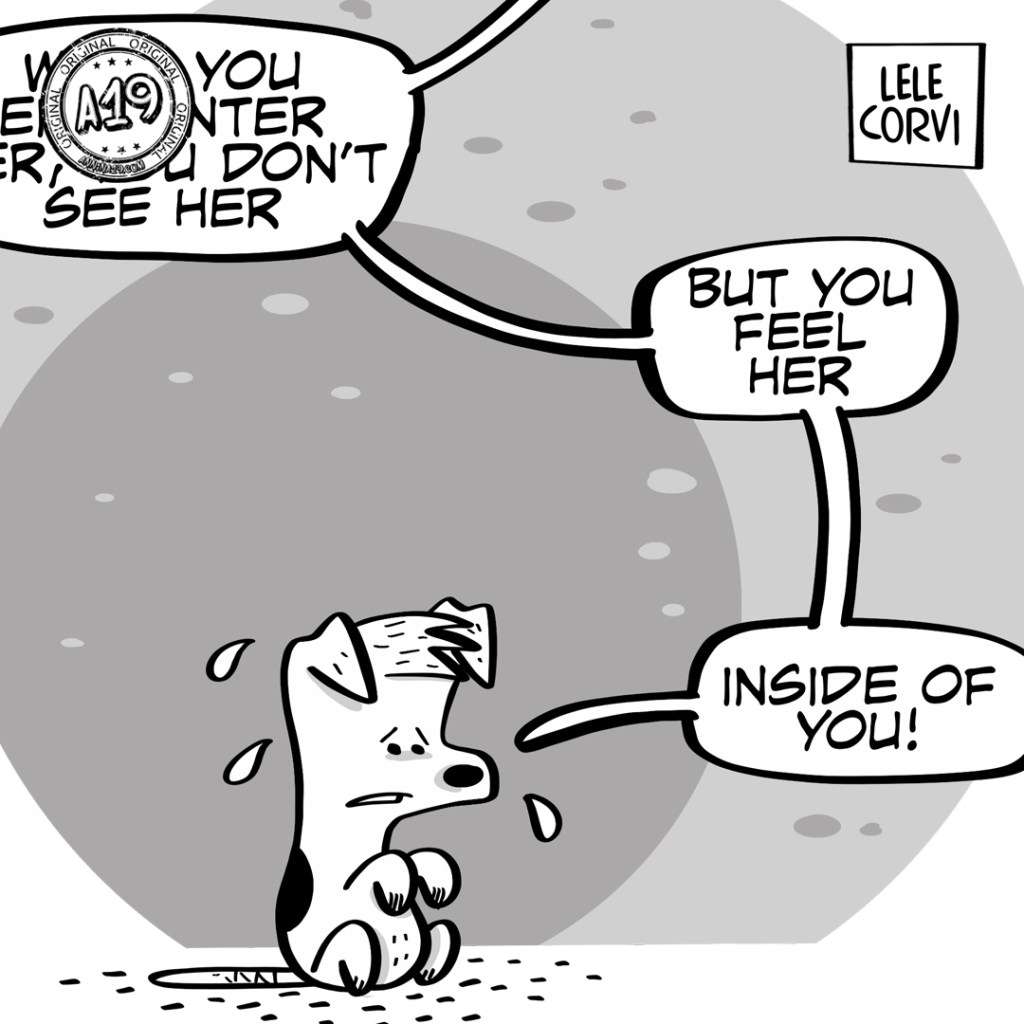 “The Story of Ace, the Dog that Comes from Space” (translated from Italian by Starleen K. Meyer), and its original title “La Storia di Ignazio, il cane che arriva dallo spazio” are an “Original A19” Project in collaboration with Lele Corvi. Copyright ©2021 Anna Lorenzi. All rights reserved. Texts: Anna “Annina” Lorenzi. Copyright ©2021 Anna Lorenzi. All rights reserved. Illustrations by Lele Corvi. Copyright ©2021 Gabriele Corvi. All rights reserved.