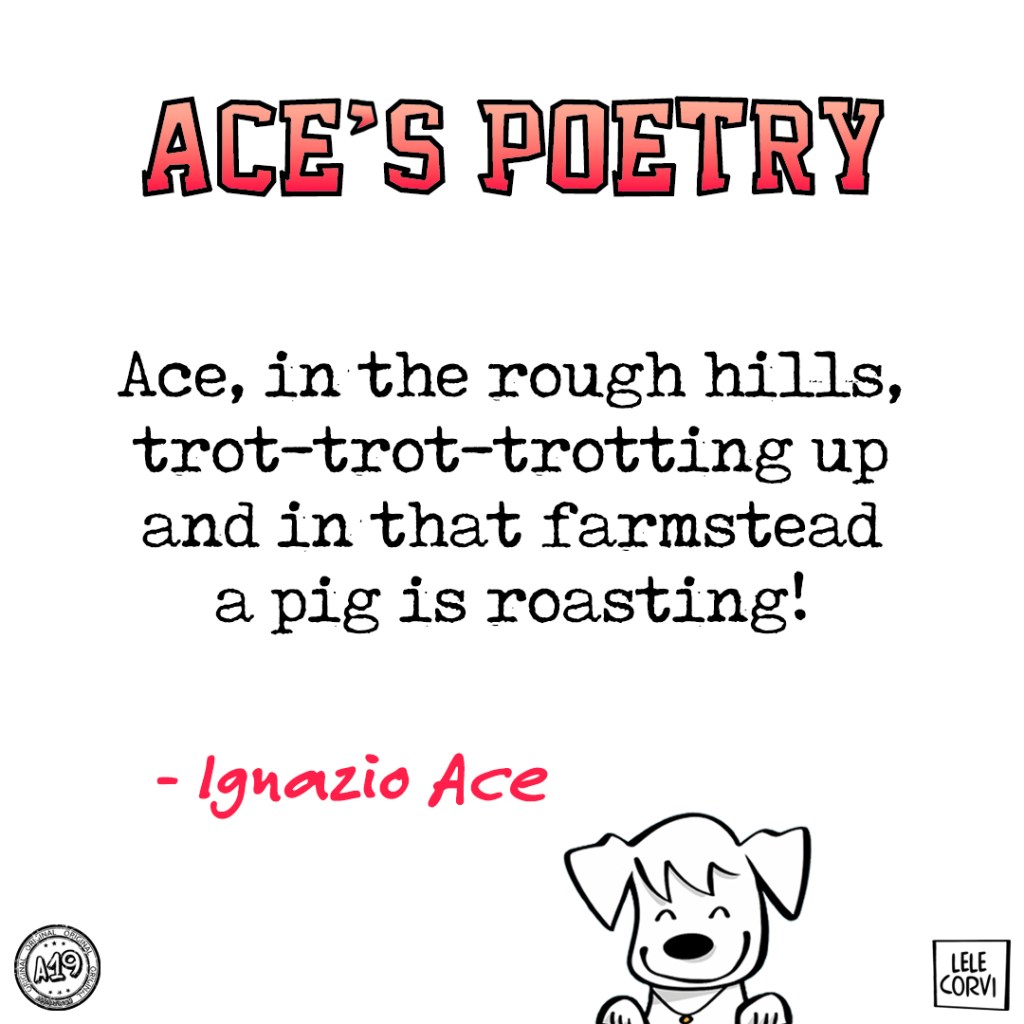 “The Story of Ace, the Dog that Comes from Space”, its original title “La Storia di Ignazio, il cane che arriva dallo spazio”, and their bilingual editions are an “Original A19” Project in collaboration with Lele Corvi & Starleen K. Meyer. Copyright ©2021-2022 Anna Lorenzi. Texts: Anna “Annina” Lorenzi. Copyright ©2021 Anna Lorenzi. Illustrations by Lele Corvi. Copyright ©2021 Gabriele Corvi. All rights reserved. English translation: Starleen K. Meyer.