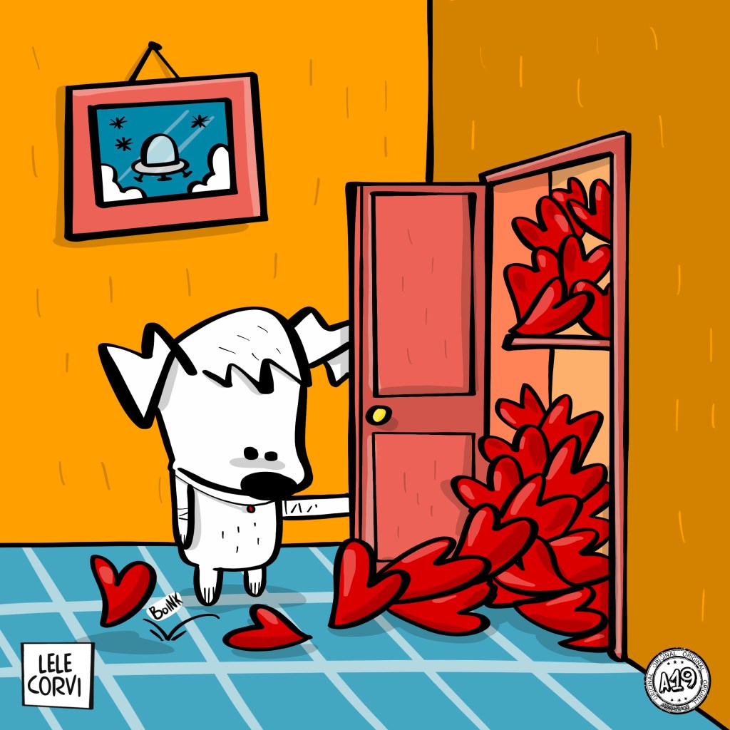 🇮🇹 CUORICINI – Ieri era San Valentino, la festa degli innamorati. Mh. Cuori messi ovunque, torte a forma di cuore, cioccolatini a forma di cuore, palloncini a forma di cuore… ho persino visto un cane terrestre che indossava un cappottino con disegnato un cuore! (Che idee…) Oggi, invece, in giro ne avrò incrociati un paio. Sbucavano da sotto le giacche di due bimbi. Voi umani avete uno strano modo di festeggiare l’amore: tutti gli altri giorni dell’anno dove li nascondete tutti quei cuoricini?! – Ignazio🐾
