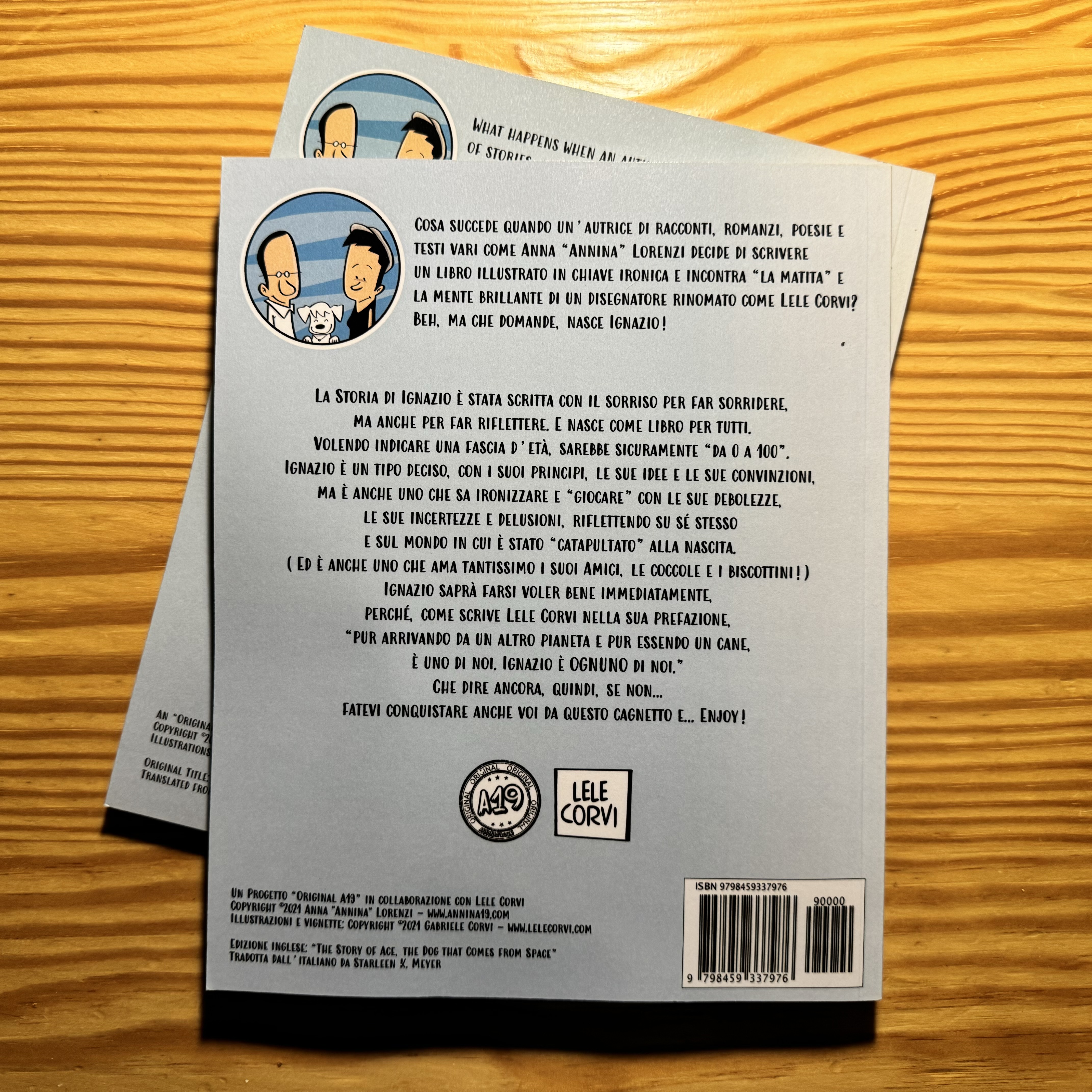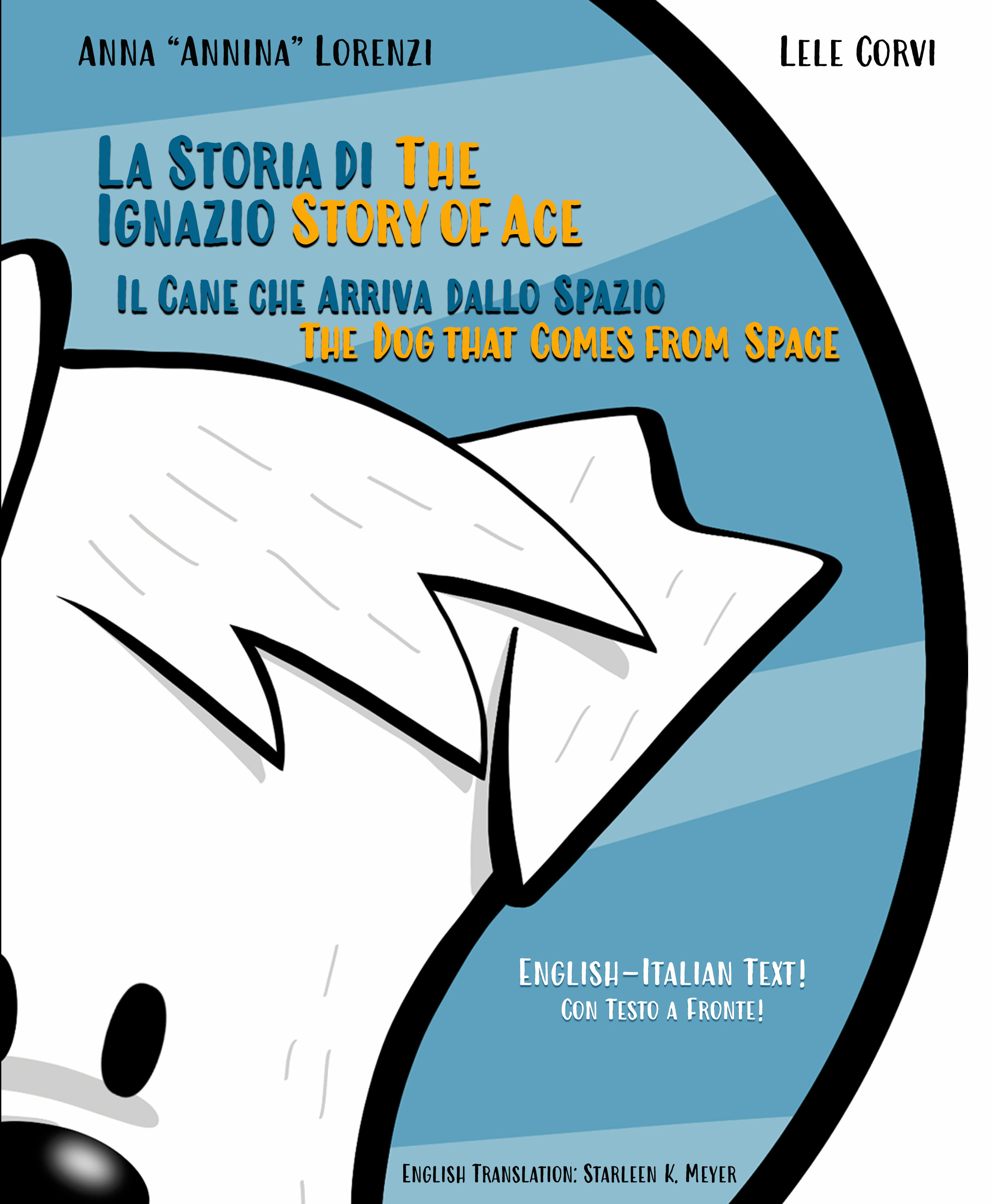 “Ace’s Dog Biscuits”, its original title “I Biscottini di Ignazio”,“The Story of Ace, the Dog that Comes from Space”, its original title “La Storia di Ignazio, il cane che arriva dallo spazio”, their bilingual editions, and all the published contents are an “Original A19” Project in collaboration with Lele Corvi & Starleen K. Meyer. Copyright ©2021-2023 Anna Lorenzi. Texts: Anna “Annina” Lorenzi. Copyright ©2021-2023 Anna Lorenzi. Illustrations by Lele Corvi. Copyright ©2021-2023 Gabriele Corvi. All rights reserved. English translation: Starleen K. Meyer.